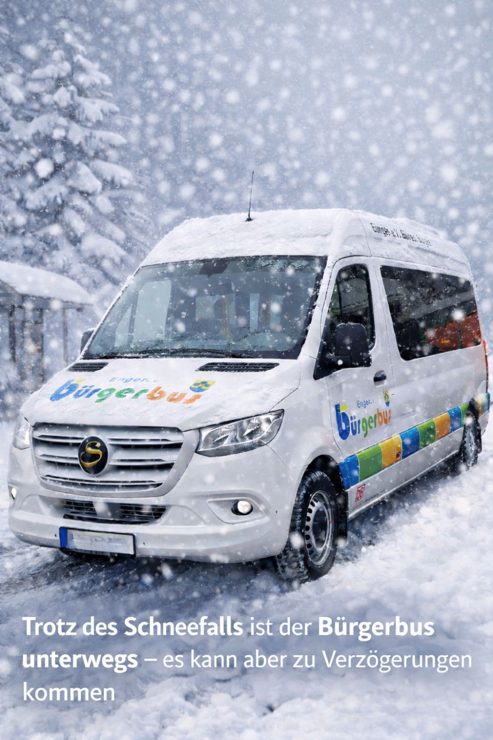 Trotz des Schneefalls ist der Bürgerbus weiterhin unterwegs.